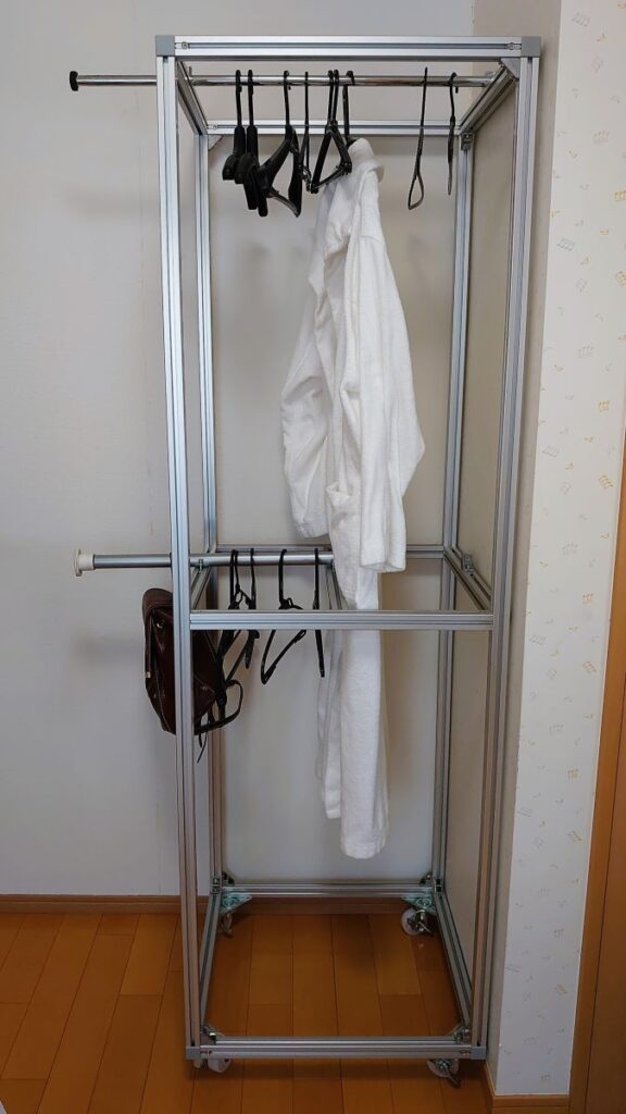 なので、絶対に壊れない、かつ、軽々移動が可能なハンガーラックを自作した。
